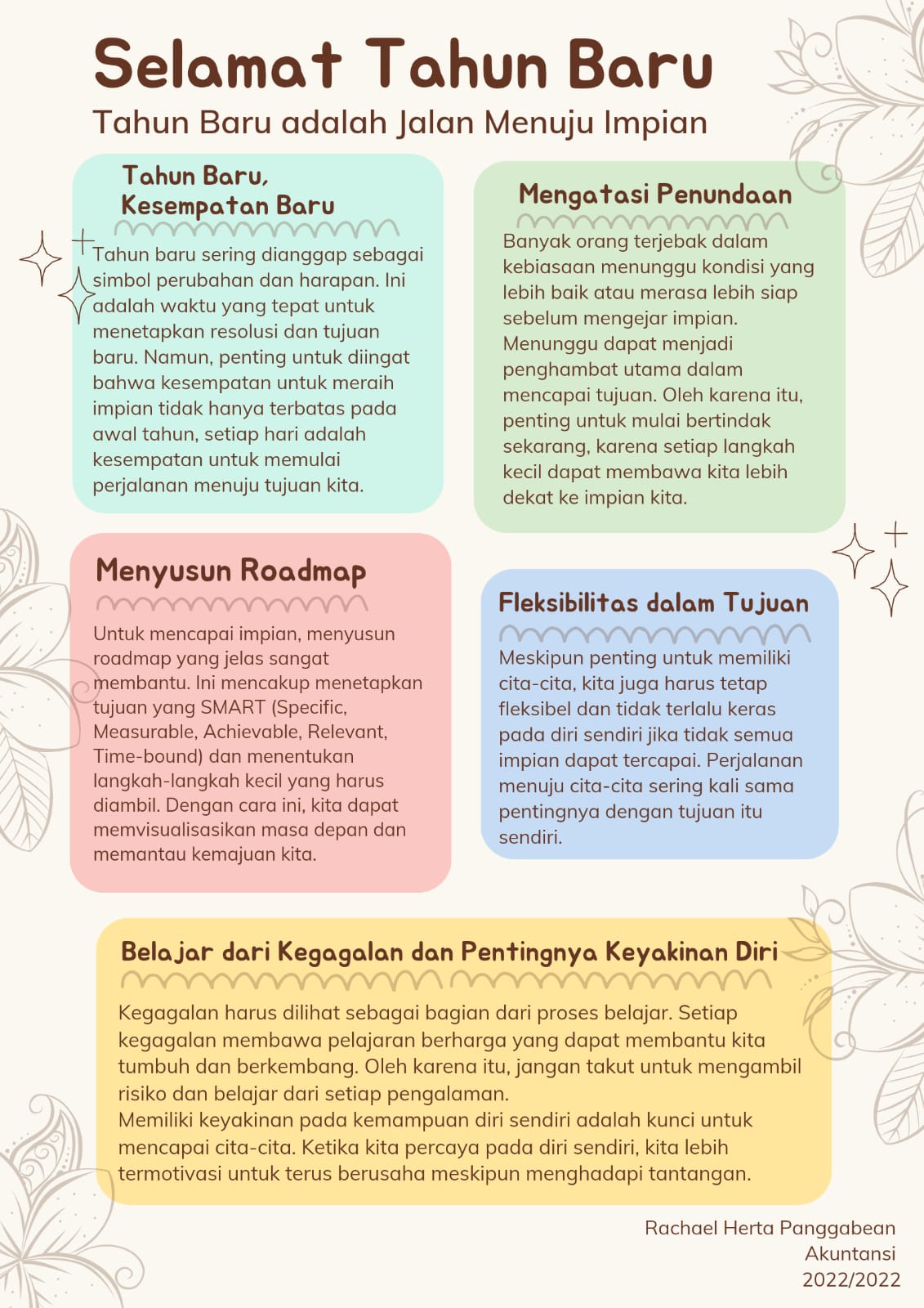 Tahun baru sering dianggap sebagai simbol perubahan dan harapan. Ini adalah waktu yang tepat untuk menetapkan resolusi dan tujuan baru. Namun, penting untuk diingat bahwa kesempatan untuk meraih impian tidak hanya terbatas pada awal tahun, setiap hari adalah kesempatan untuk memulai perjalanan menuju tujuan kita.
